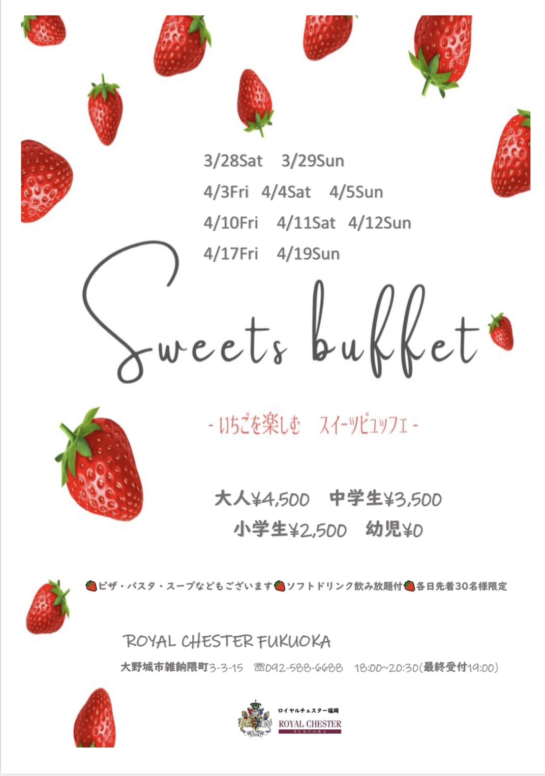 ※毎回人気のスイーツビュッフェですので、ご予約をおすすめいたします。