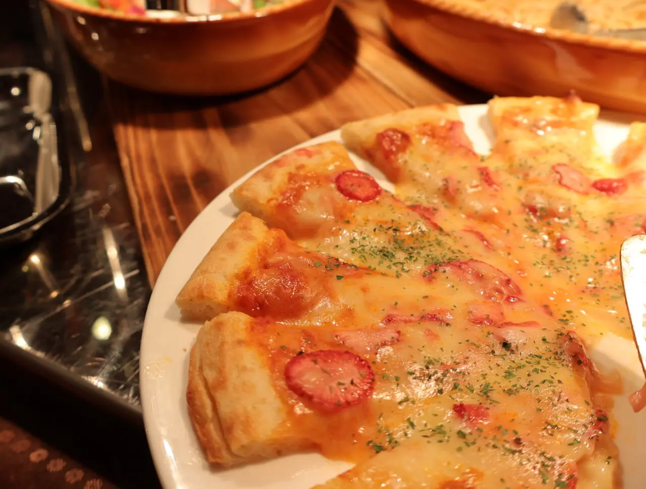 中でも目を引くのは、輪切りにしたいちごがのったピザ。いちごの甘酸っぱさとチーズの塩味は相性抜群です!デザート感覚というよりは、お酒に合いそうな大人の味。この意外な組み合わせは癖になるおいしさです。
