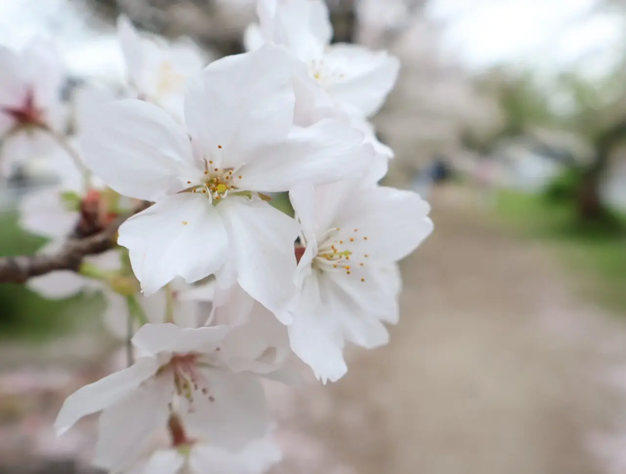 訪れた時は、あいにくの曇り空でしたが、今年(2026年)もきれいな桜のトンネルができていました。
