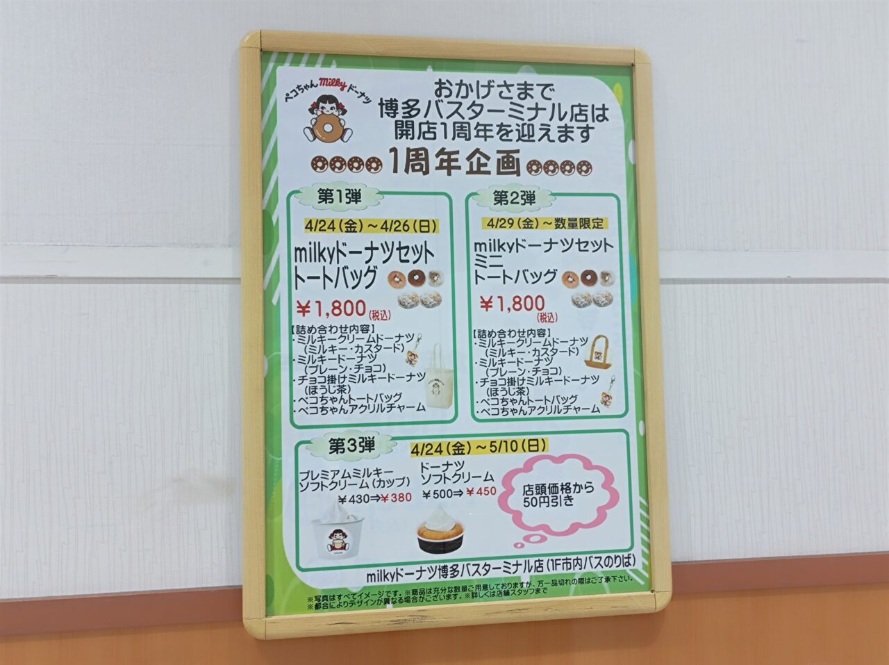 ②ペコちゃんmilkyドーナツ 博多バスターミナル店 1周年